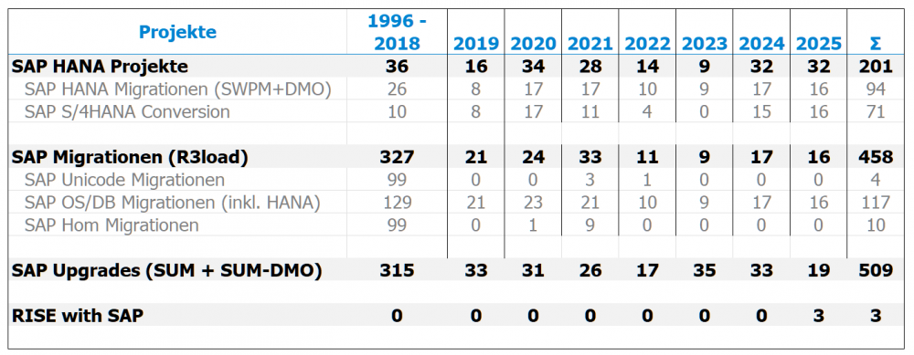 inklusive OS/DB-Migration, Unicode-Konvertierung und S/4HANA-Transformation. -